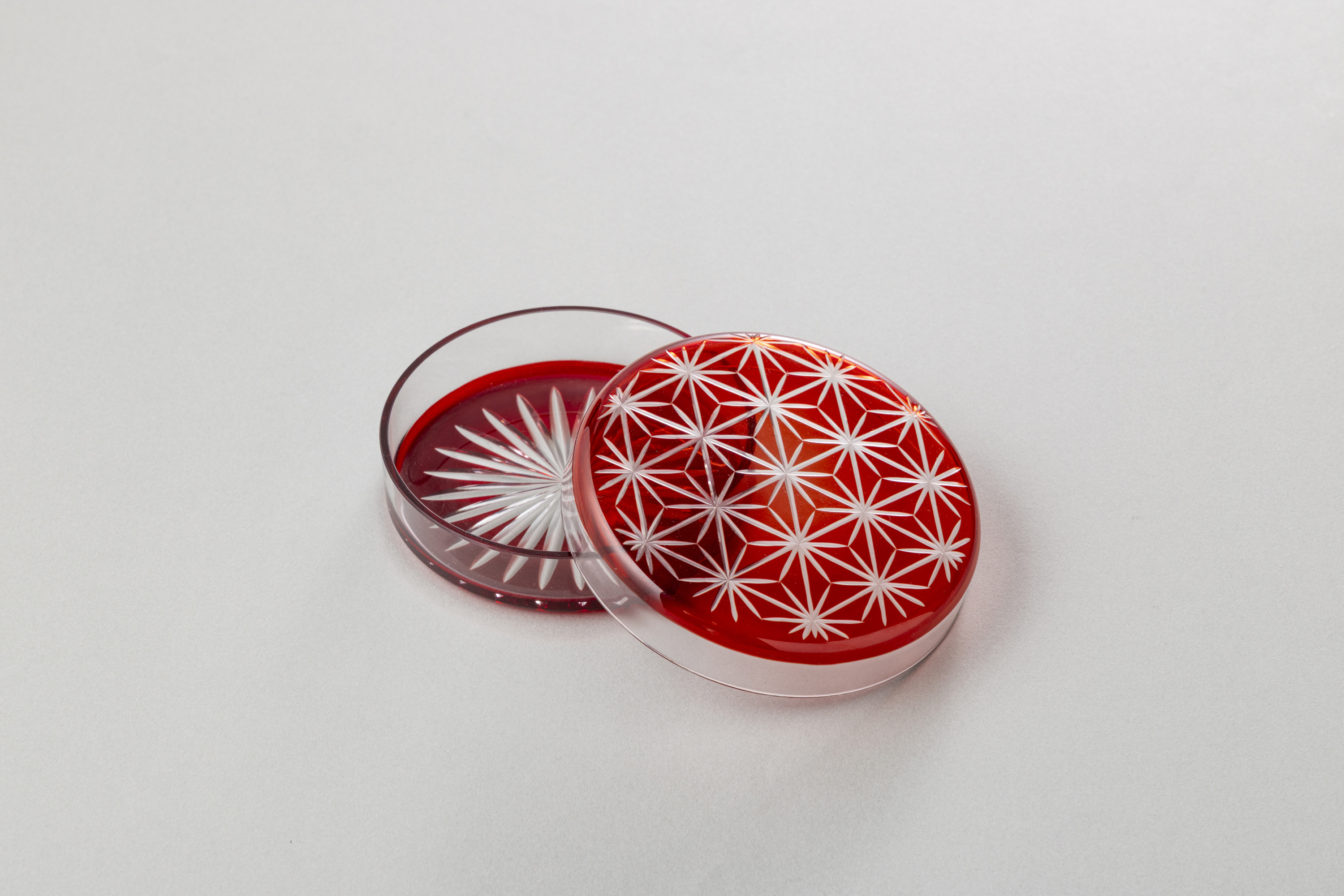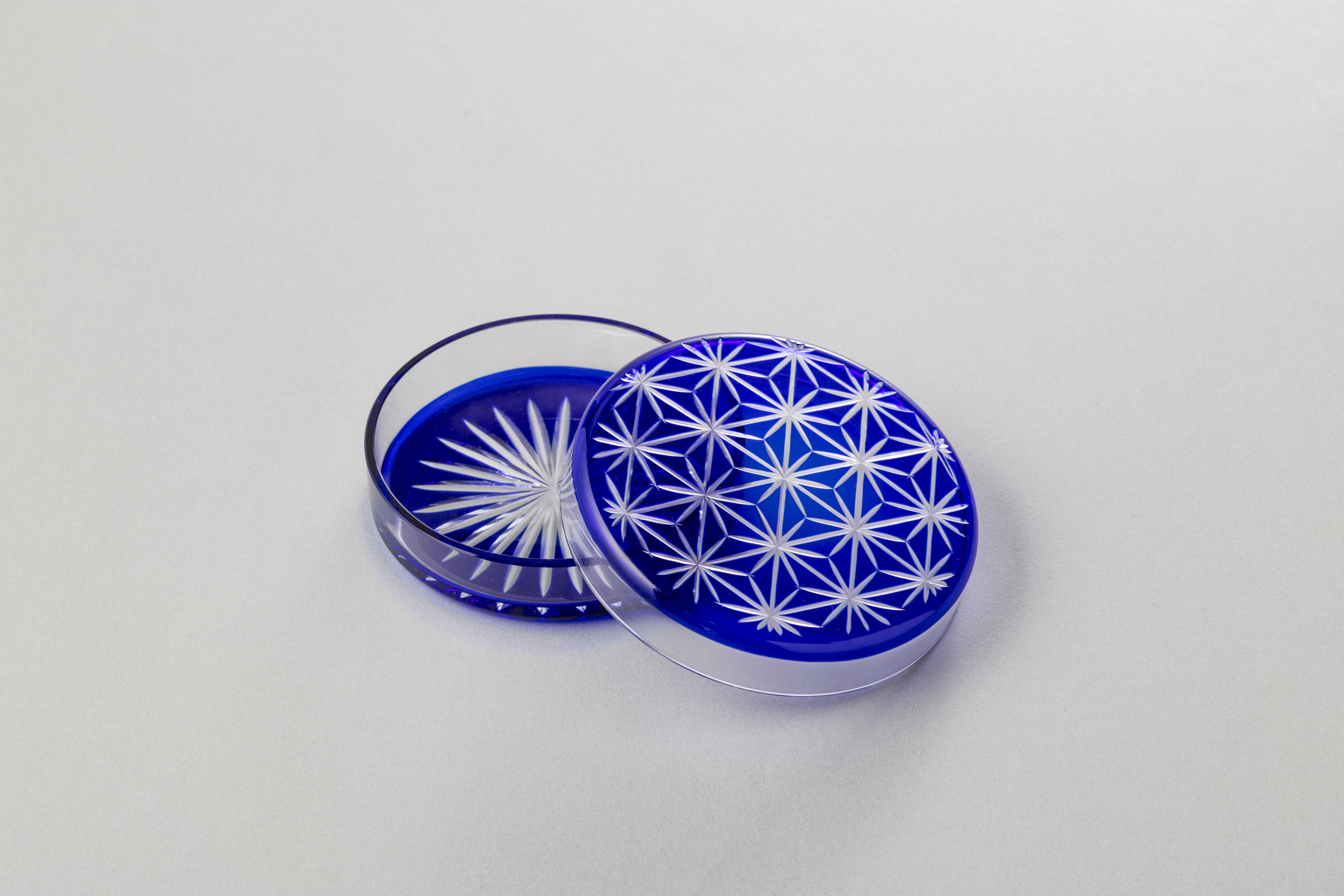 Like a jewel box shimmering in the light, this small vessel crafted in traditional Edo Kiriko glass brings elegance and color to modern spaces.