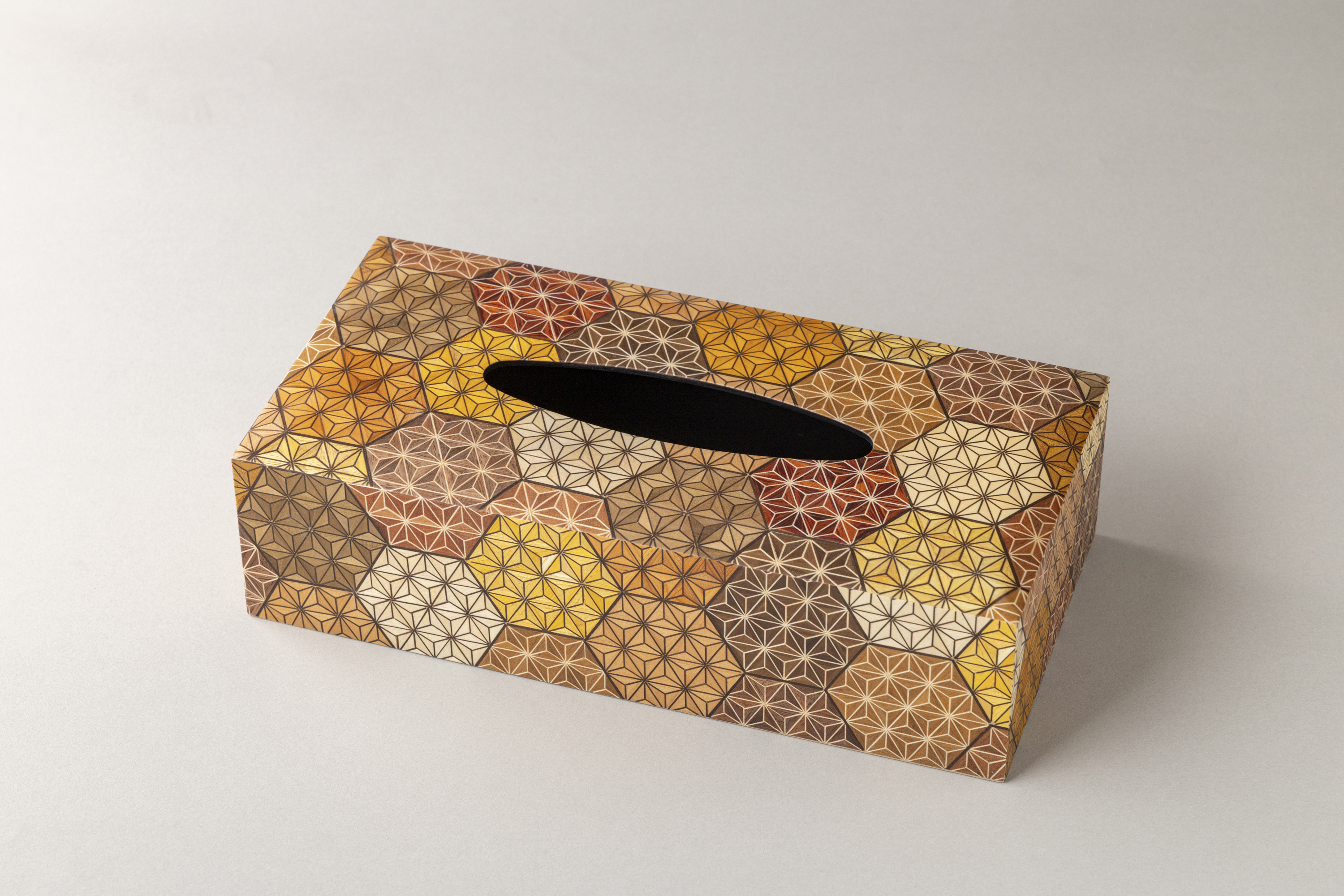 様々な樹木が持つ自然の色を活かし、それぞれ集めて精緻な幾何学模様を作り出す技術、それが箱根寄木細工です。