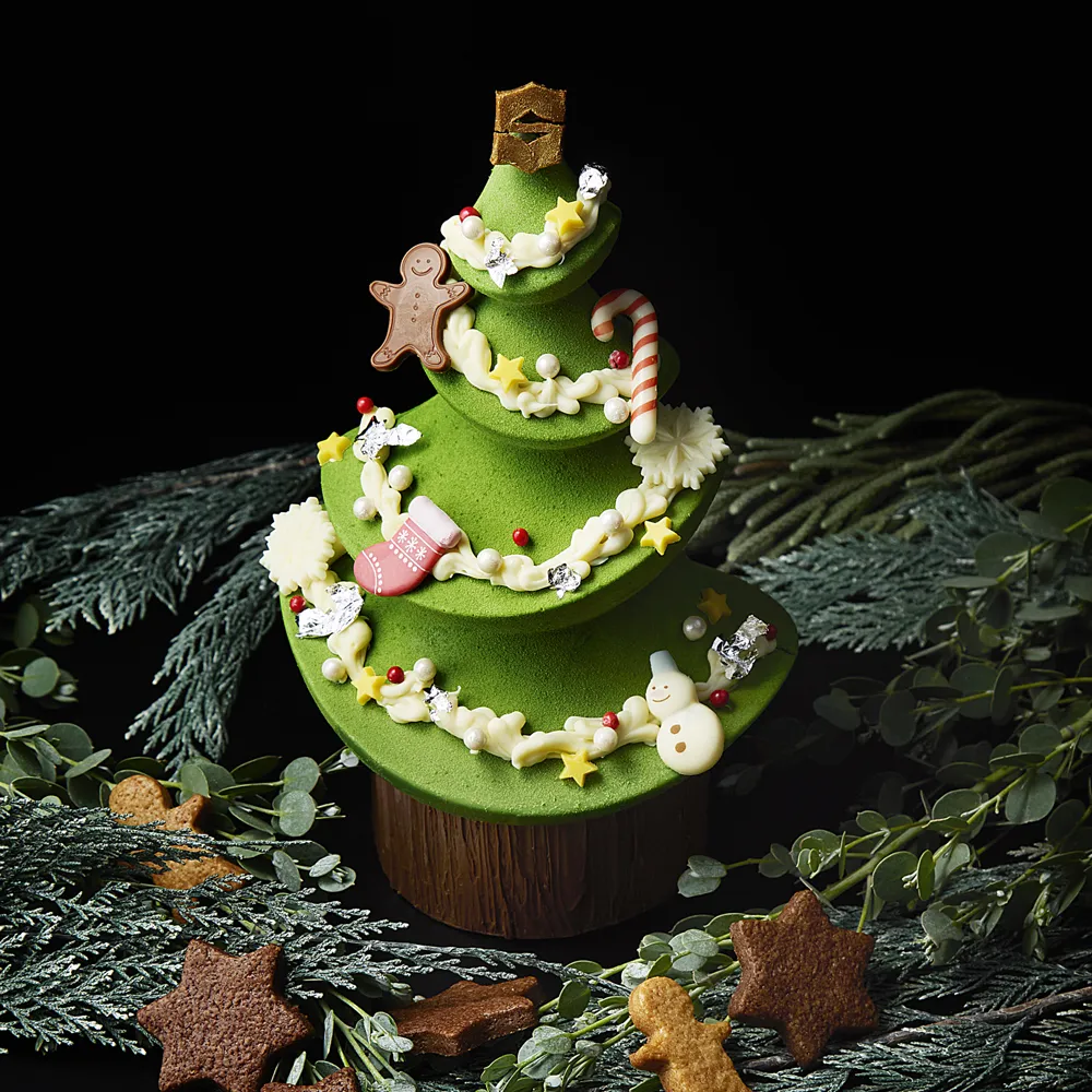 Snow-Kissed Chocolate Tree今年はクリスマスツリーチョコレートを数量限定で販売いたします。ツリー型ショコラの中に、スパイス香るジンジャー&シナモンクッキーを忍ばせ、幹の部分は芳醇なメイプルシュトーレンで作り上げた冬の贅沢。